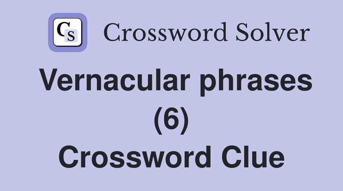 Vernacular phrases (6) Crossword Clue Answers Crossword Solver