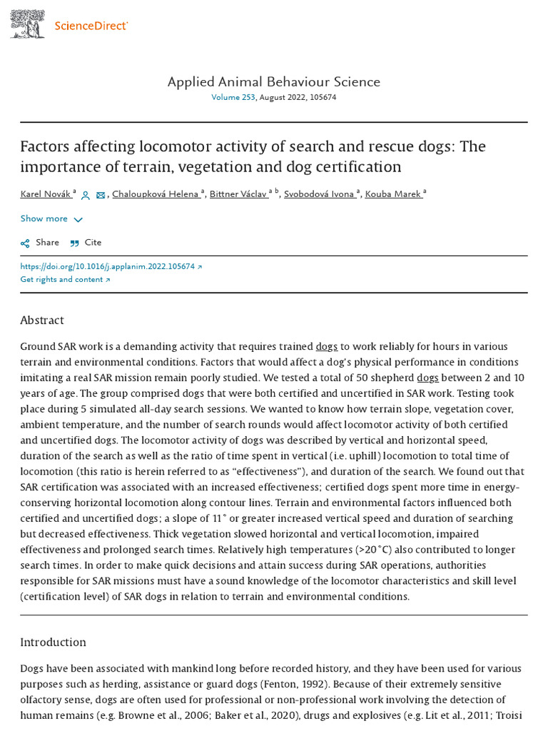 Factors Affecting Locomotor Activity of Search and Rescue Dogs The