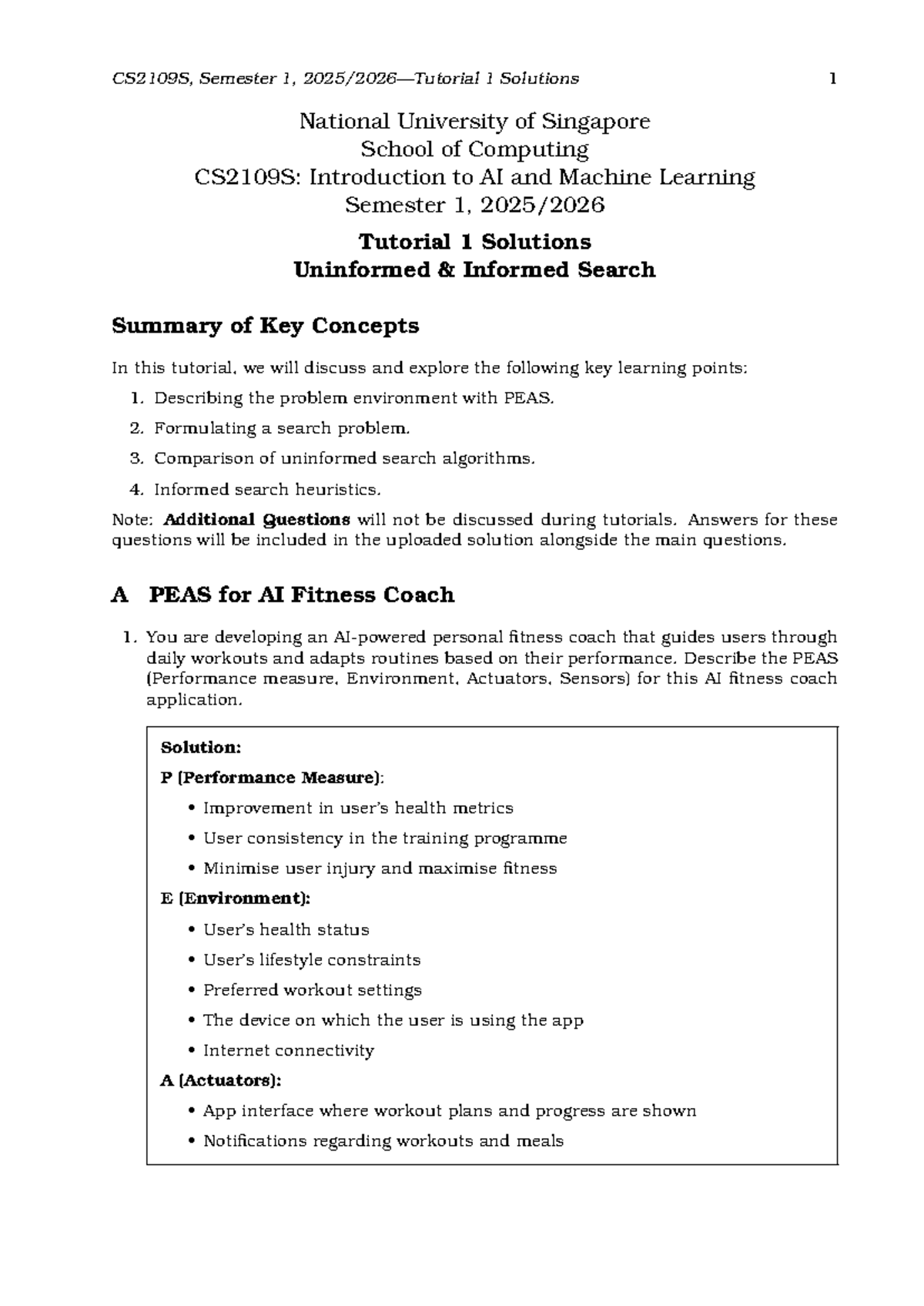 CS2109S: Tutorial 1 Solutions on AI Search Algorithms Studocu