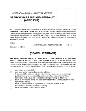 AFFIDAVIT FOR SEARCH WARRANT County of MARIN Doc Template pdfFiller