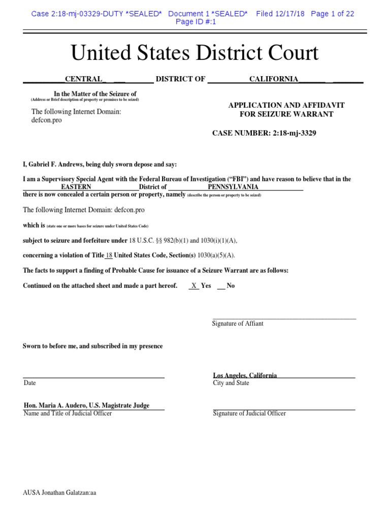 Booter Takedown Affidavit For Seizure Warrant PDF Denial Of