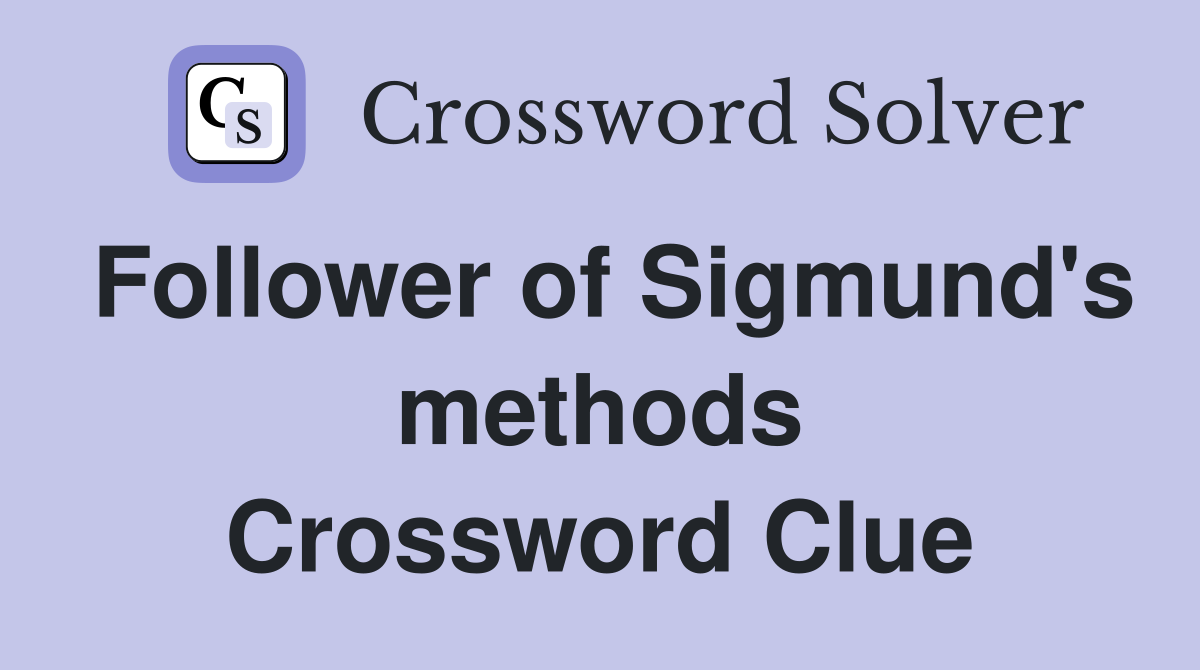 Follower of Sigmund #39 s methods Crossword Clue Answers Crossword Solver