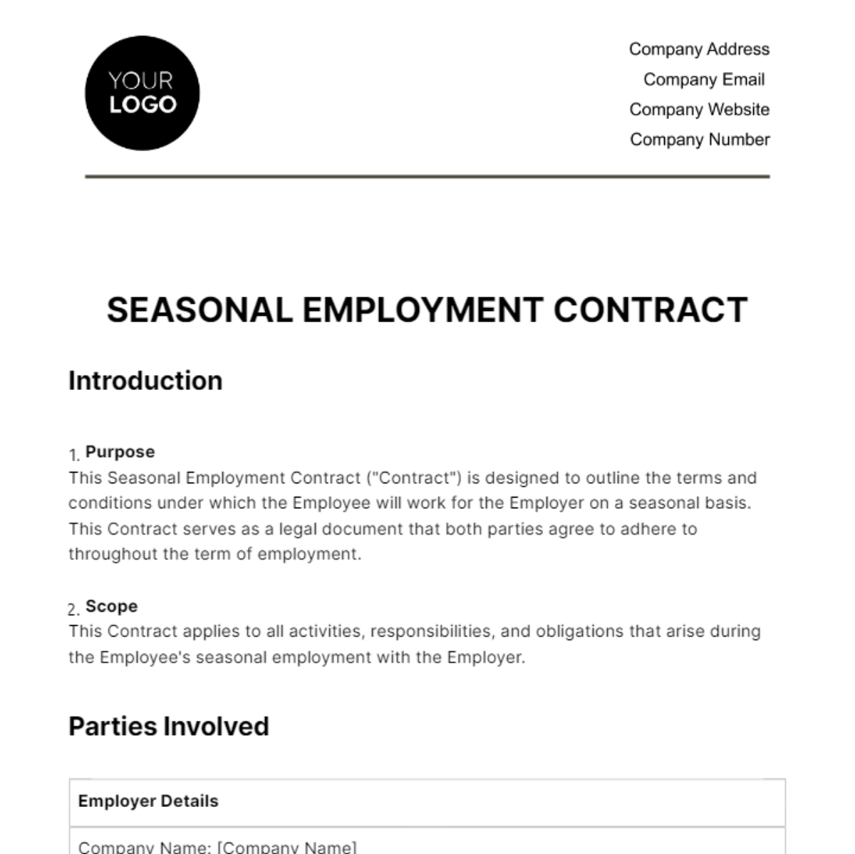 Seasonal Employment Contract HR Template in Word PDF Google Docs