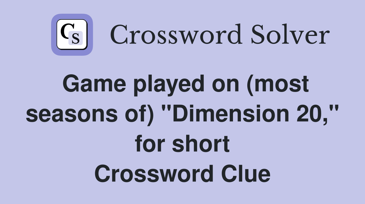 Game played on (most seasons of) quot Dimension 20 quot for short Crossword