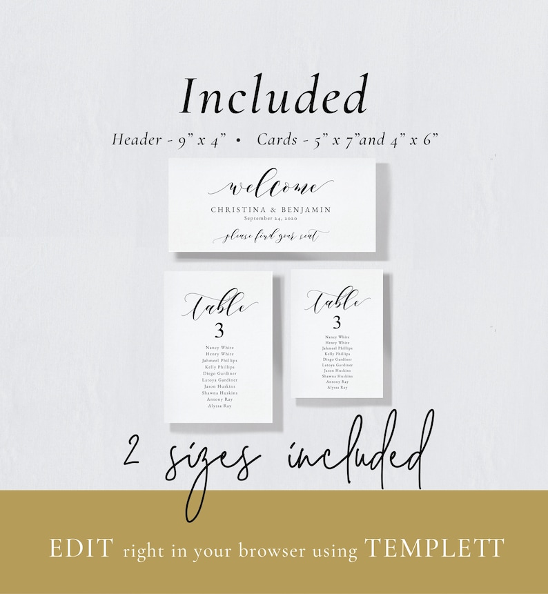Editable Seating Chart Cards Template INSTANT DOWNLOAD Table Etsy
