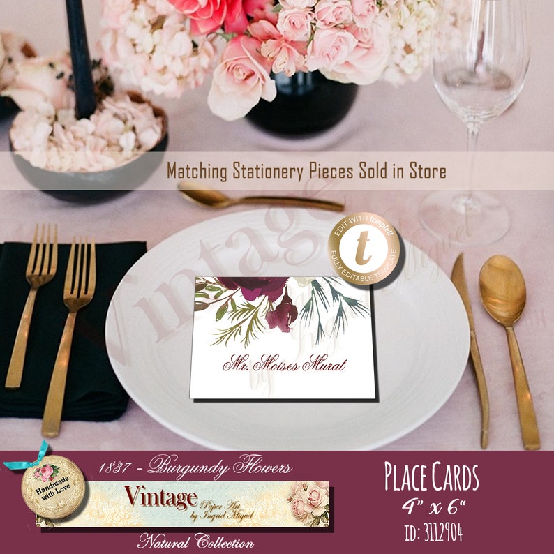 Burgundy Seating Chart Cards Rose Seating Card Template Etsy
