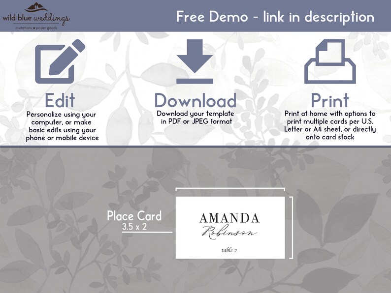 Modern Wedding Seating Card Template Printable Minimalist Place Cards