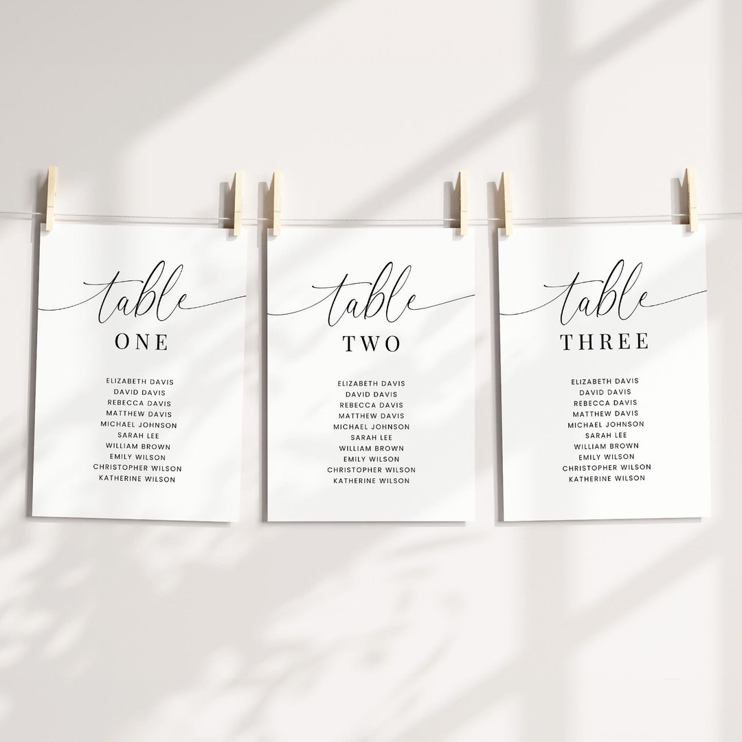 Minimalist Table Seating Card Template DIY Wedding Seating Chart