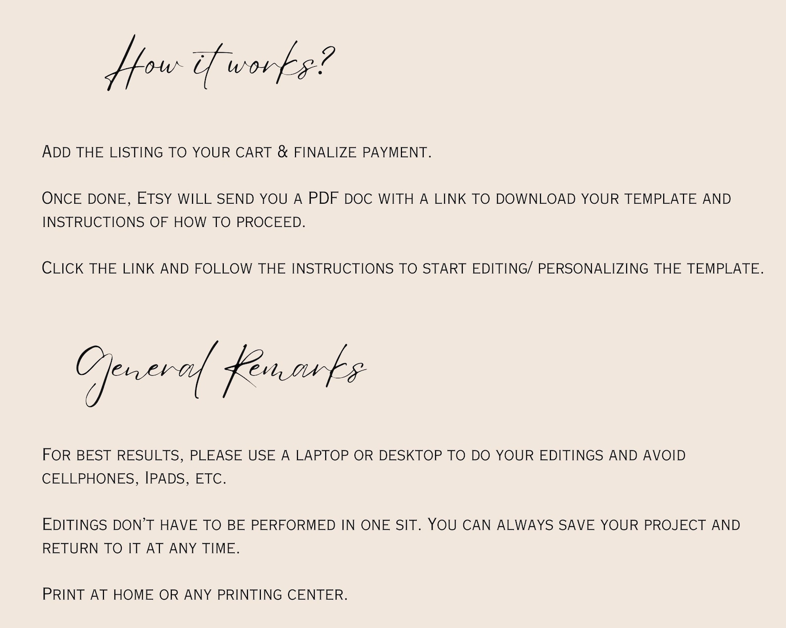 Wedding Seating Card Template DIY Table Numbers Cards Digital Download