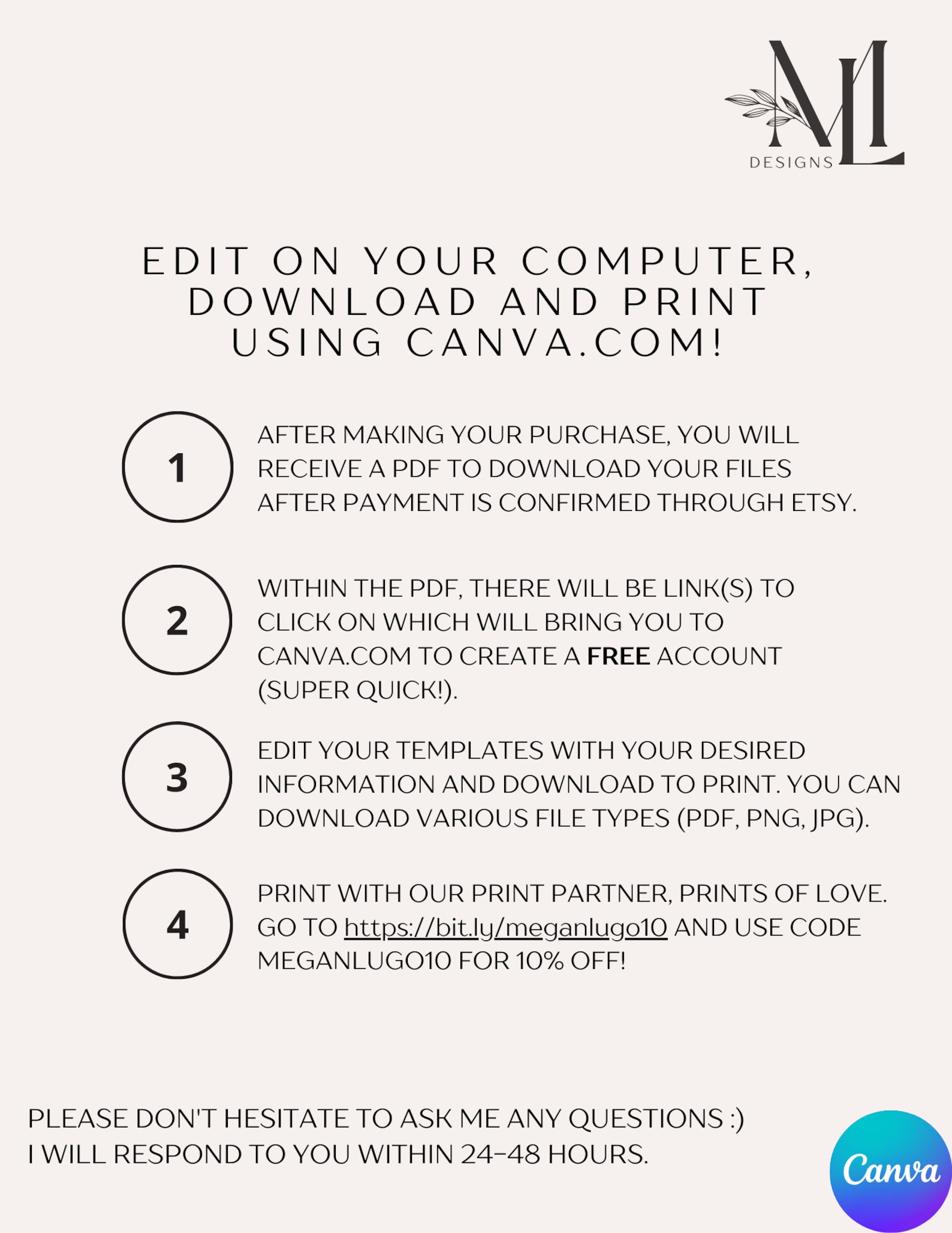 Wedding Seating Chart Template // DIY Seating Cards Editable Seating