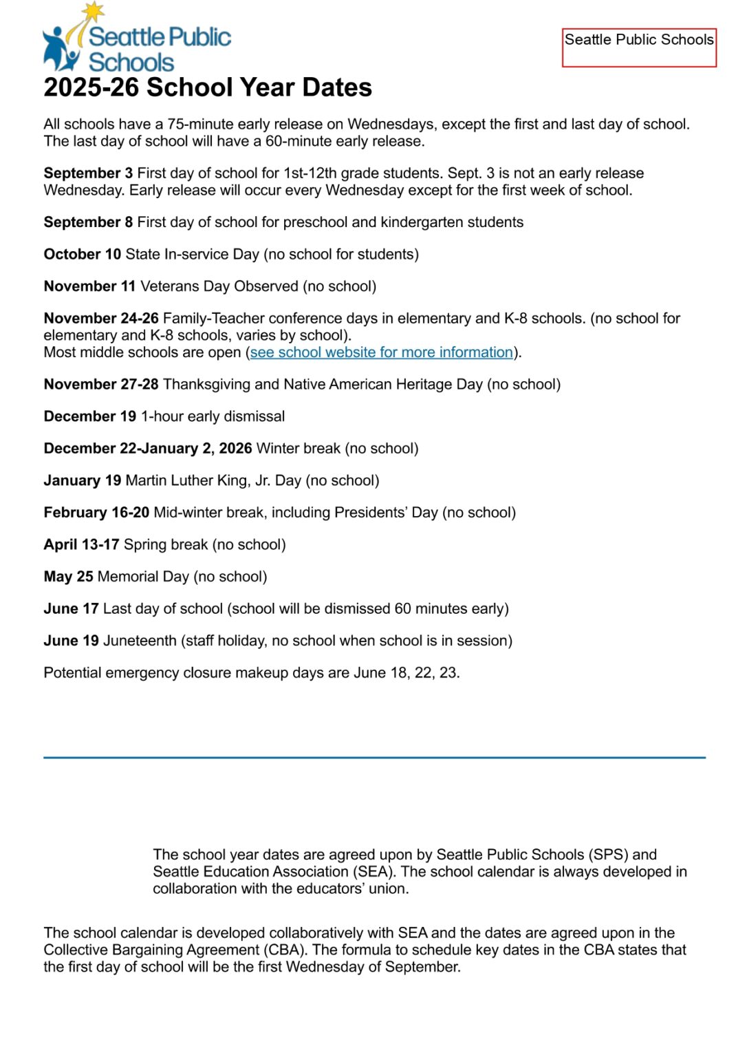 Seattle Public Schools 📅 Exciting News The 2025 26 School Year
