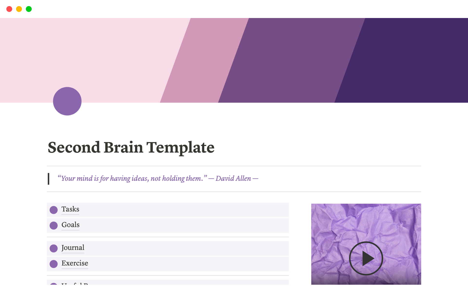 Second Brain Notion Template Beginner and Neurodivergent Friendly