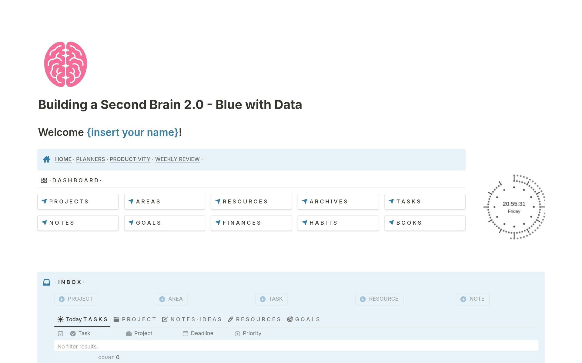 Second Brain Notion Template Notion Dashboard Simple Notion Planner