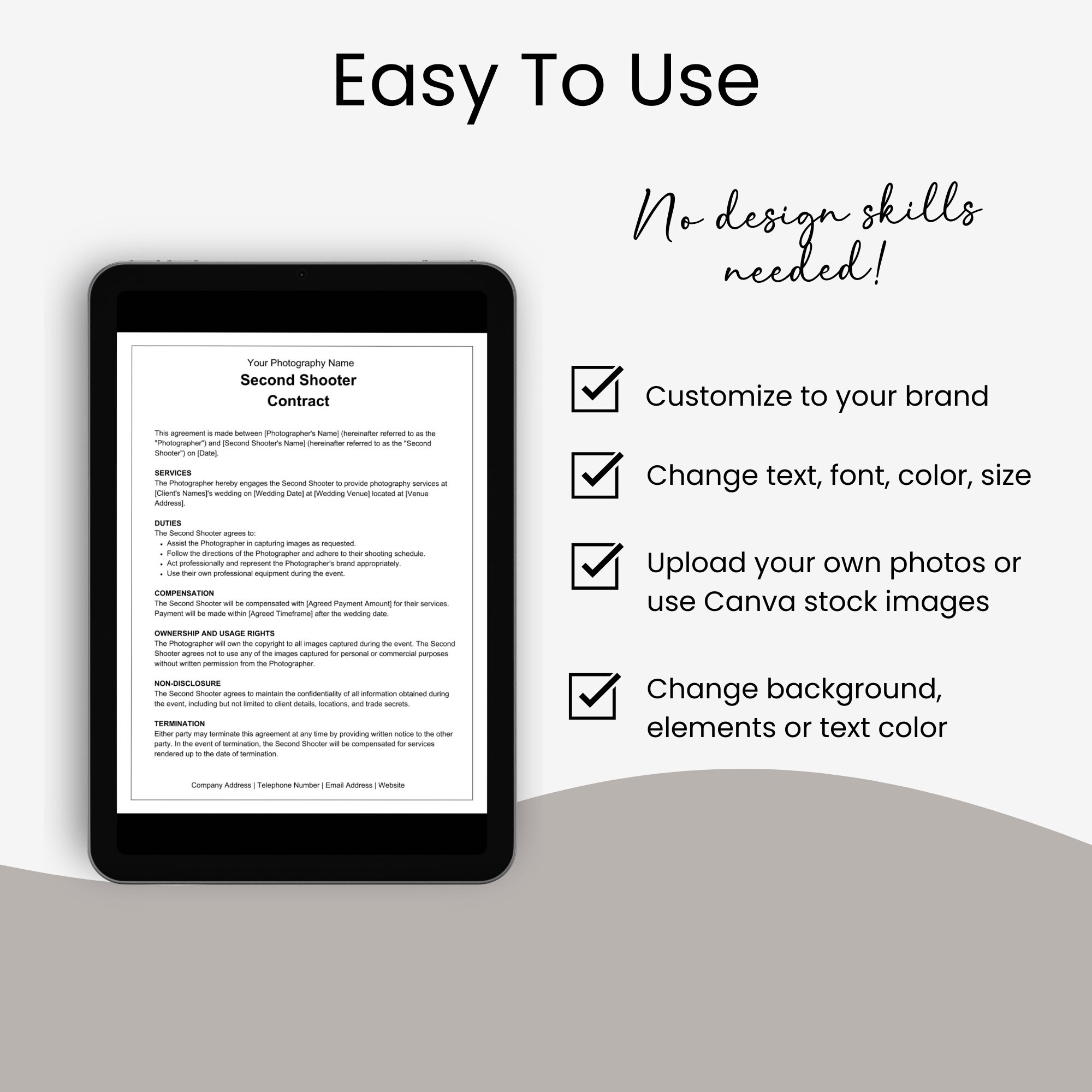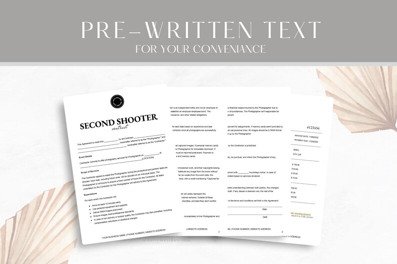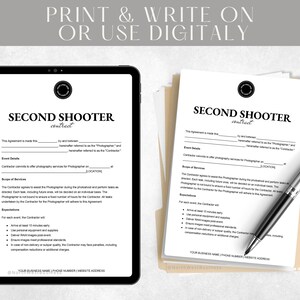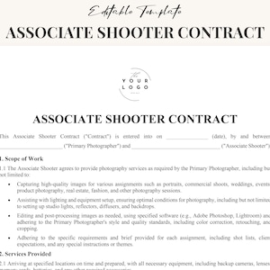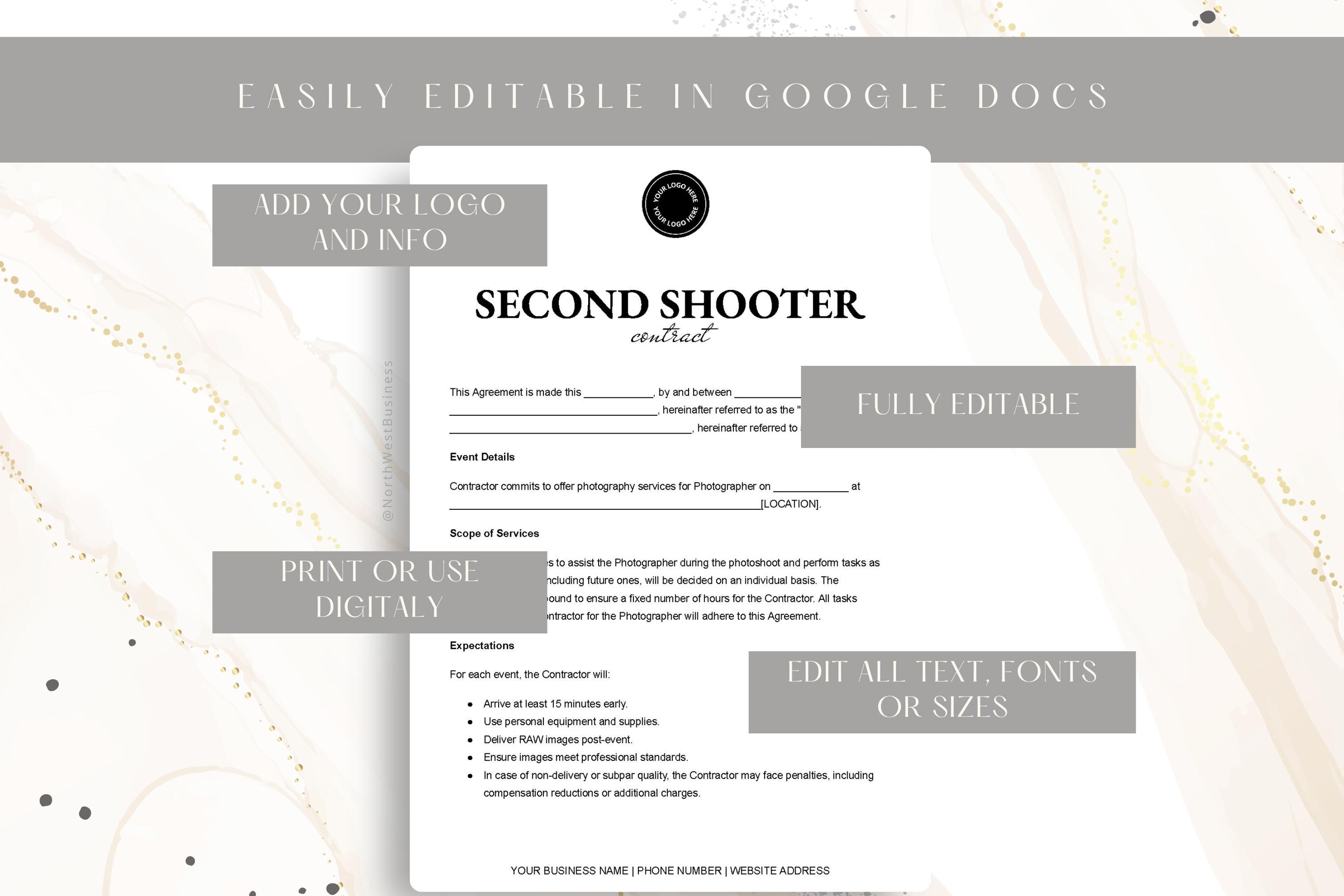 Associate Photography Contract Template Editable Second Shooter