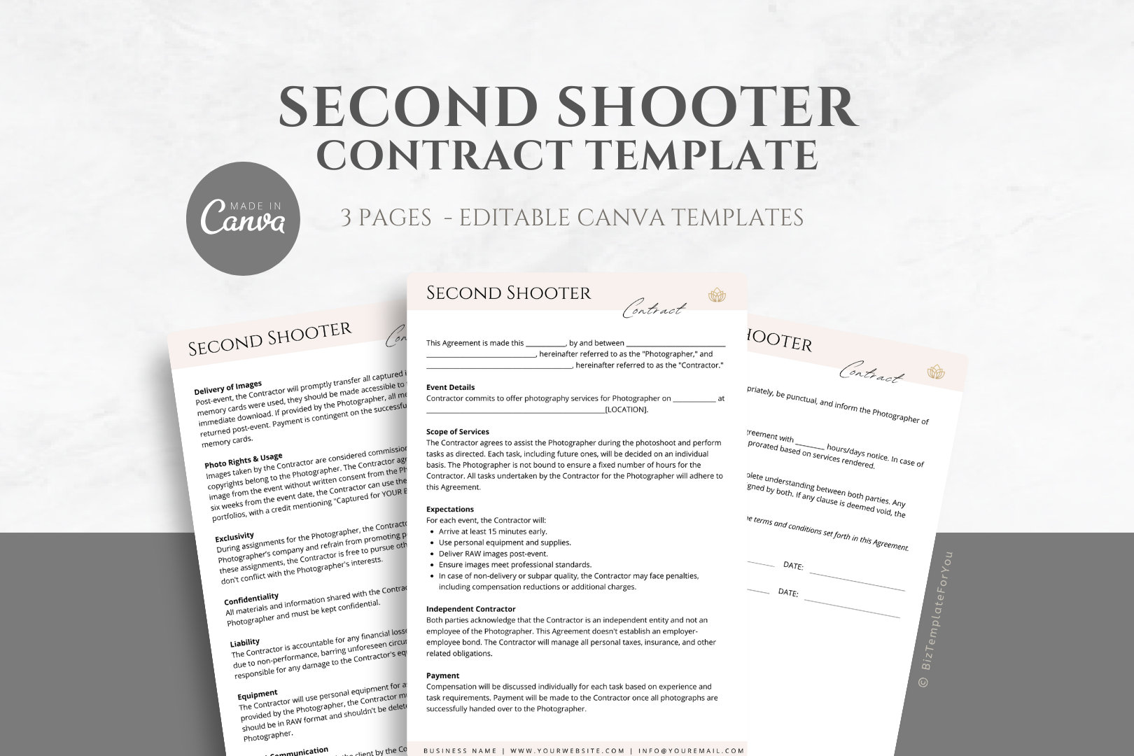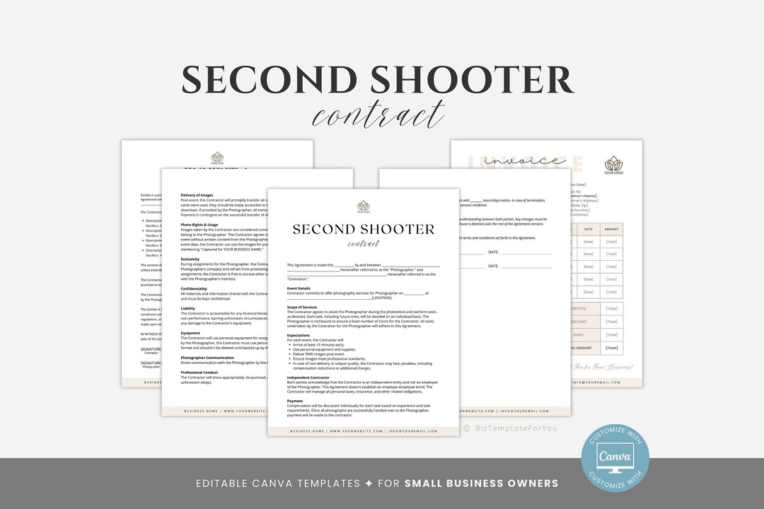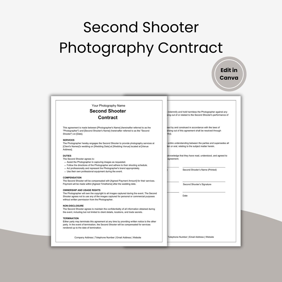 Editable Photography Second Shooter Contract Template Canva Template