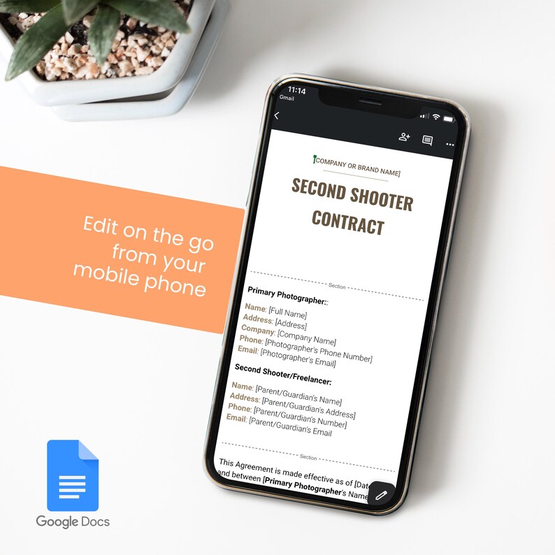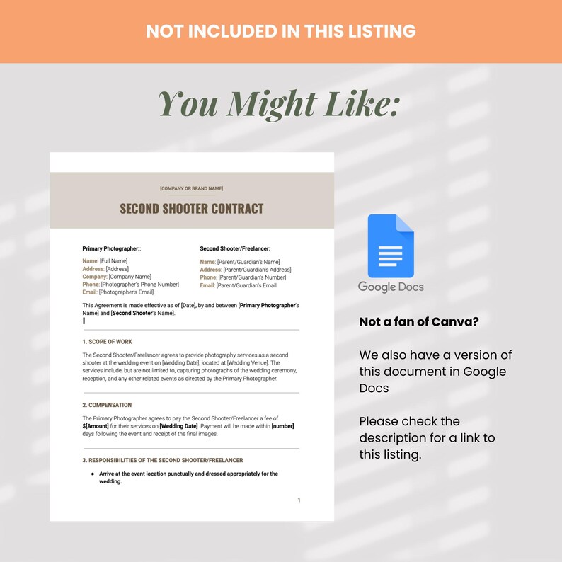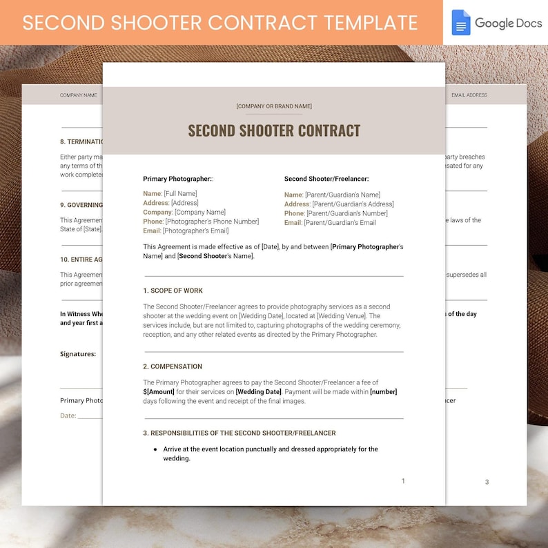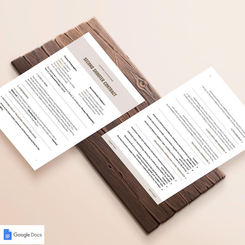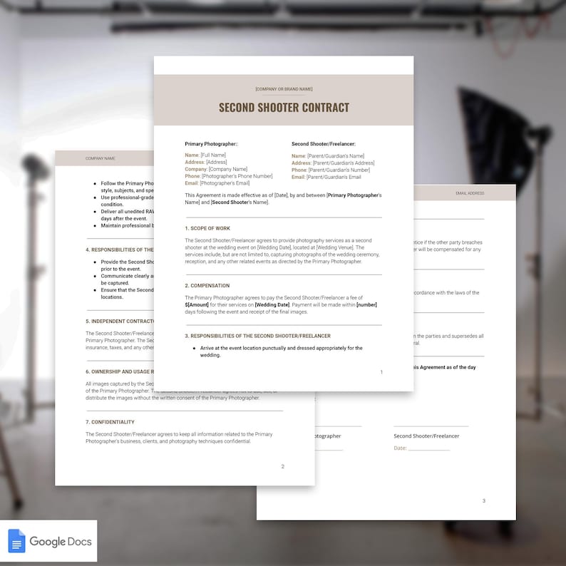 Second Shooter Contract Google Docs Template for Freelance Wedding