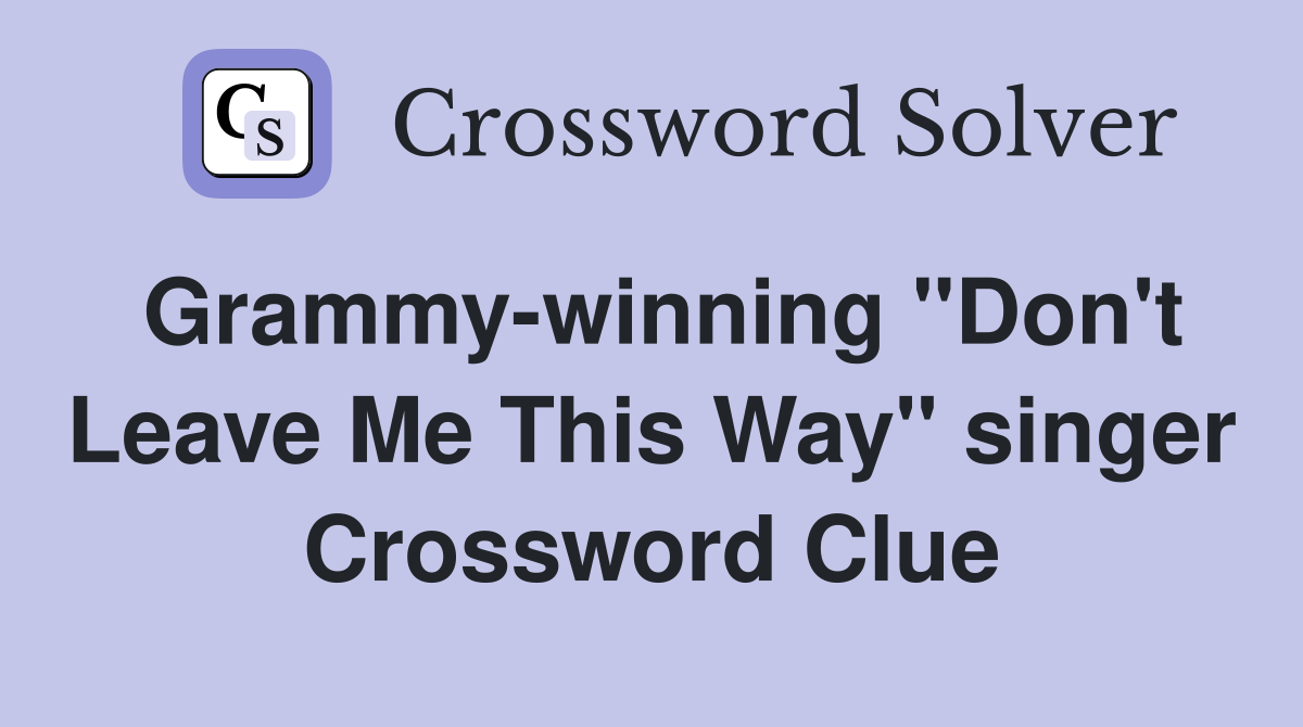 Grammy winning quot Don #39 t Leave Me This Way quot singer Crossword Clue
