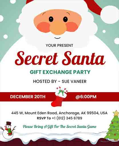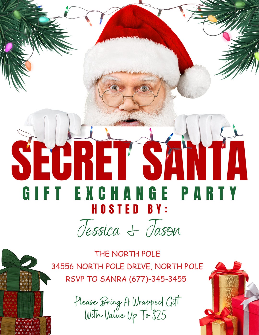 Secret Santa Gift Exchange Flyer Editable Digital Download Instant