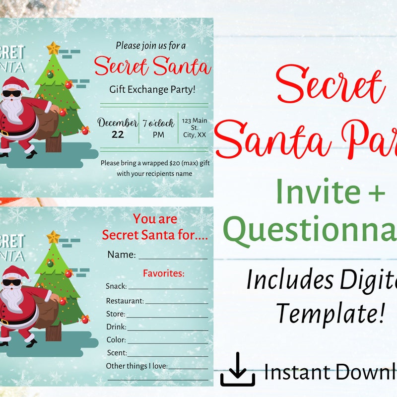 Secret Santa Questionnaire Secret Santa Party Invite Secret Etsy