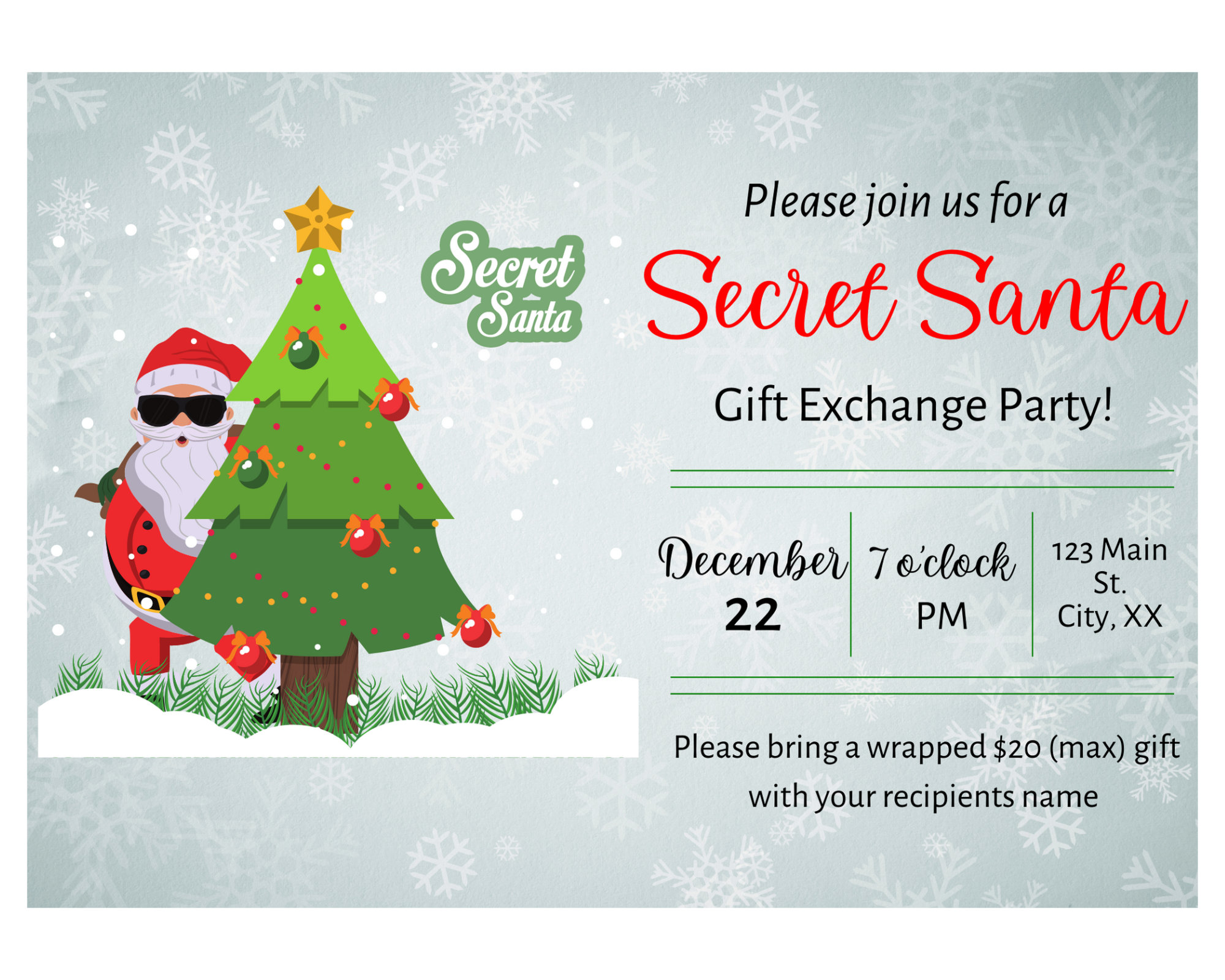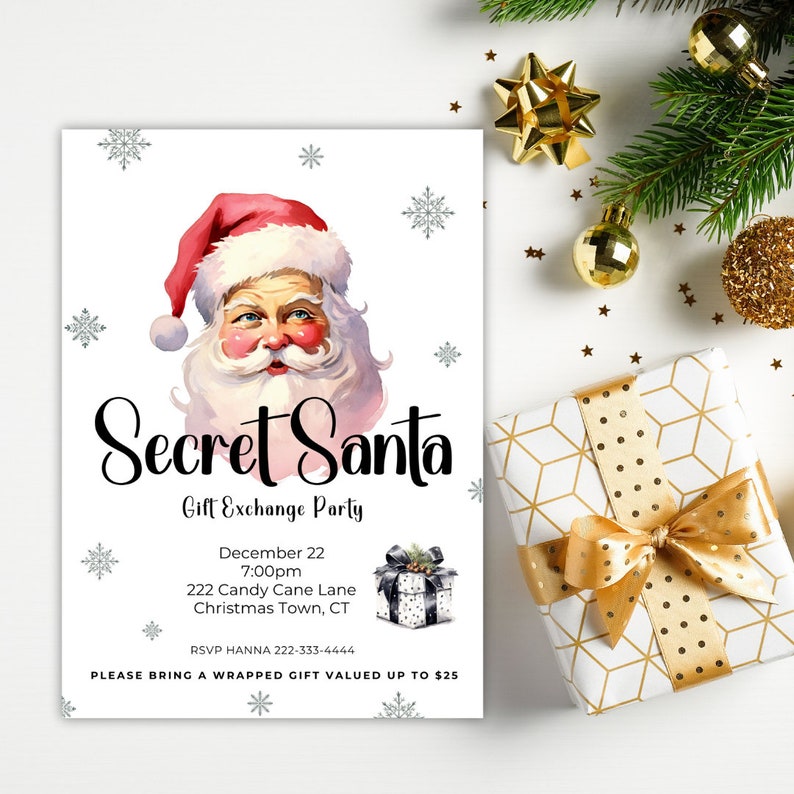 Secret Santa Invitation Template Christmas Gift Exchange Etsy