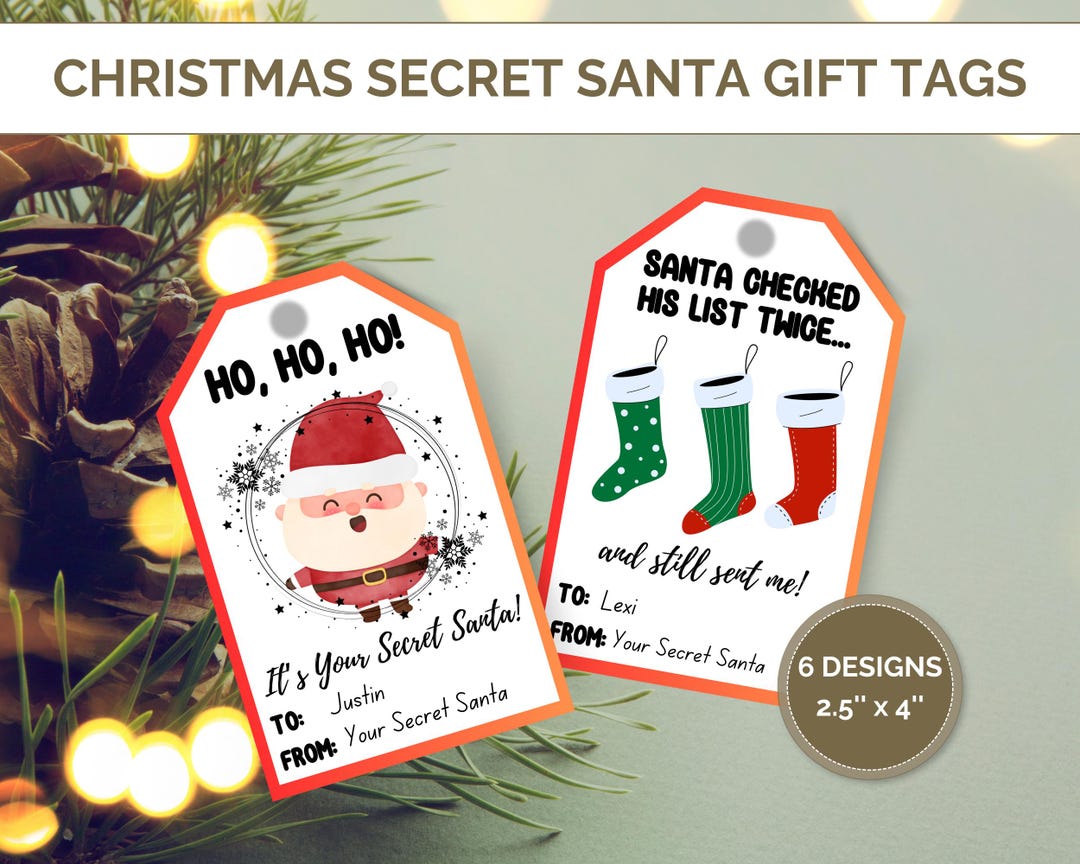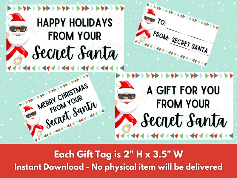 Secret Santa Christmas Gift Tags Instant Download Digital Standard