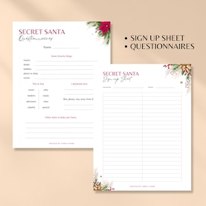 Secret Santa Sign up Sheet Secret Santa Questionnaire Secret Santa Gift