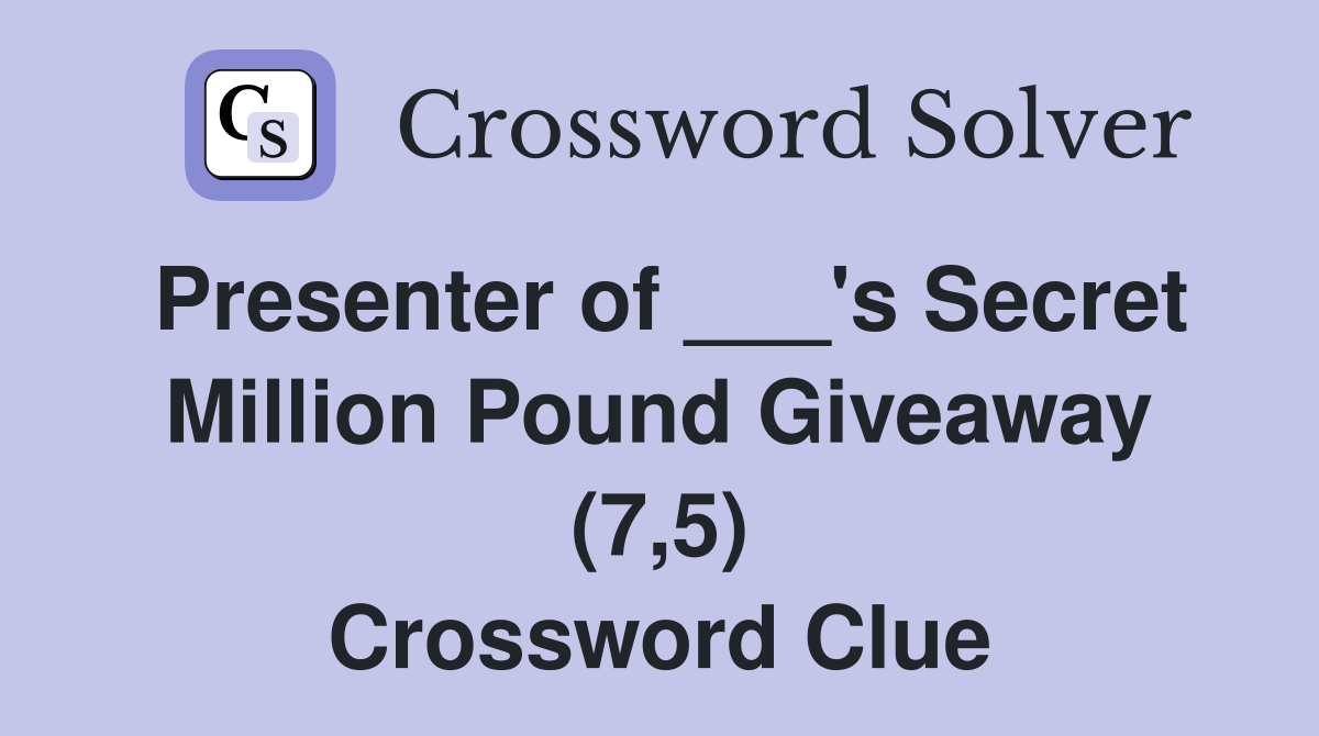 Presenter of #39 s Secret Million Pound Giveaway (7 5) Crossword Clue