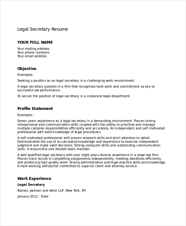 FREE 9 Sample Secretary Resume Templates in MS Word PDF