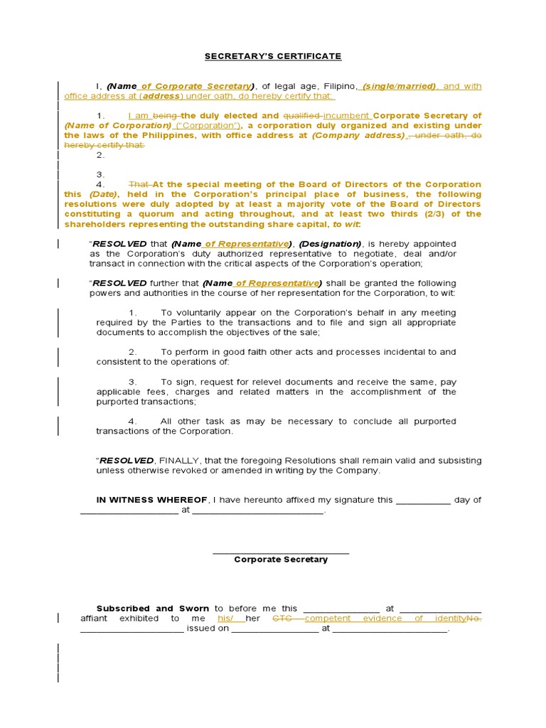 What Is A Secretary s Certificate? Law Firm in Philippines