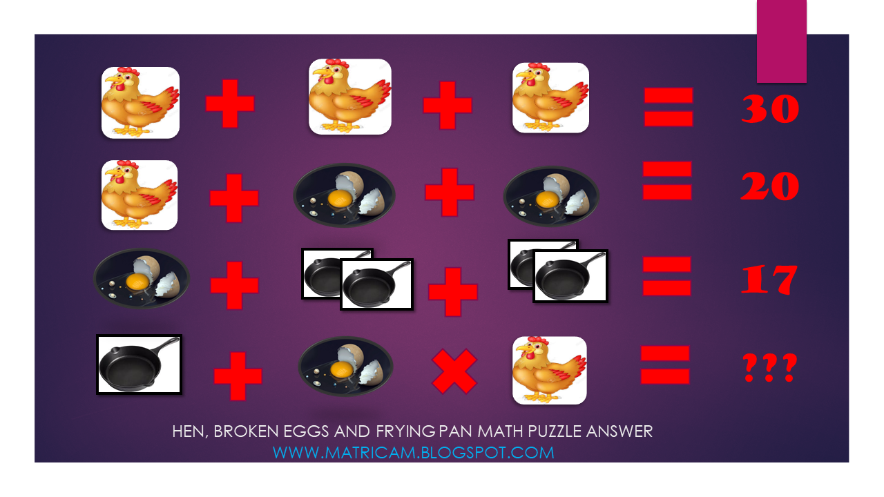 HEN BROKEN EGGS AND FRYING PAN MATH PUZZLE ANSWER