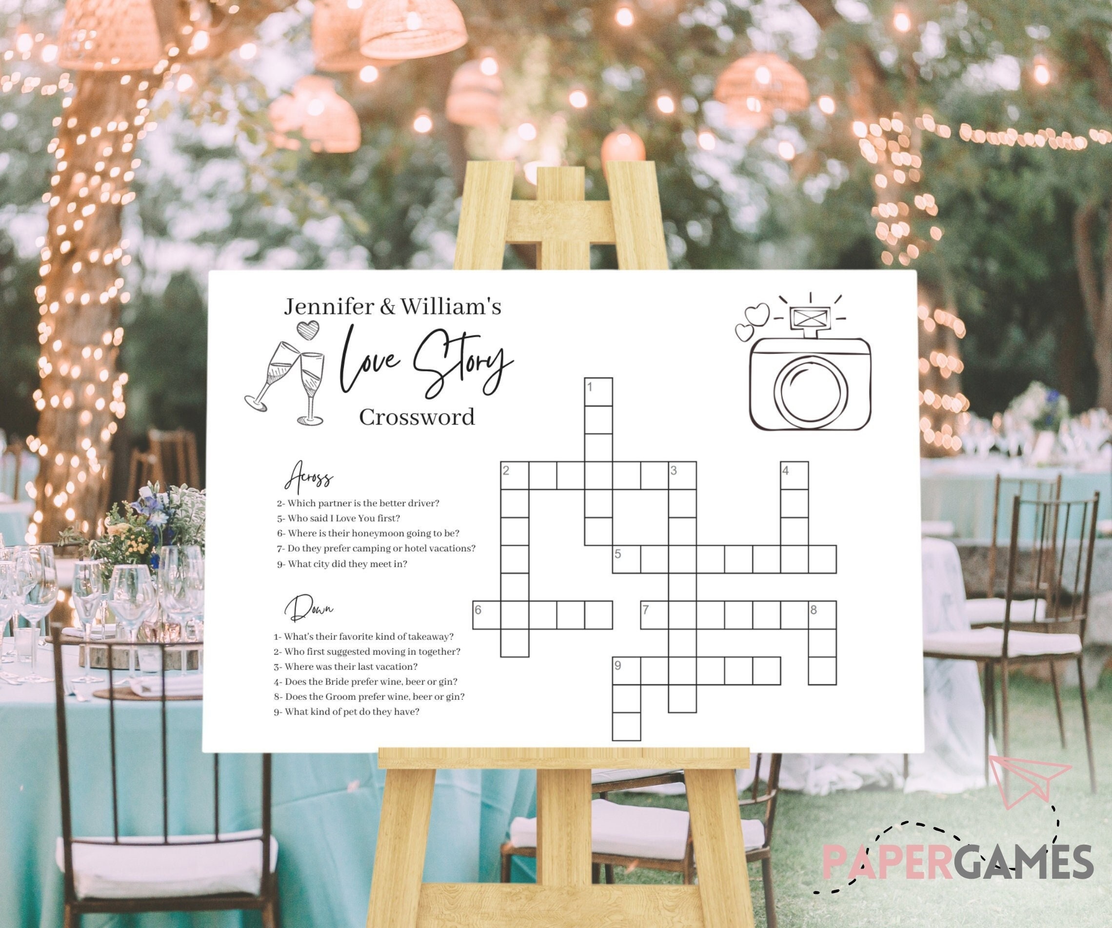 Custom Wedding Crossword Puzzle Personalized Bridal Shower Crossword