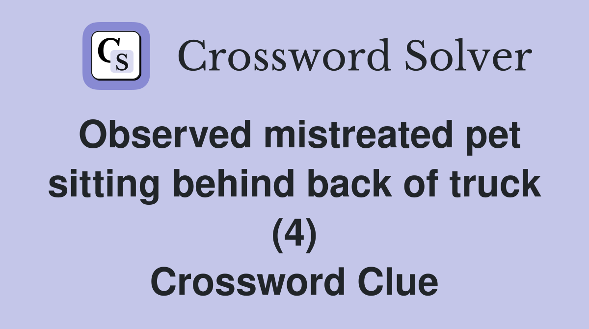 Observed mistreated pet sitting behind back of truck (4) Crossword