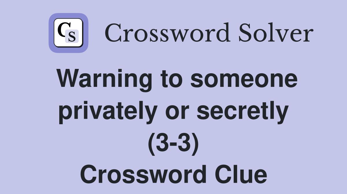 Warning to someone privately or secretly (3 3) Crossword Clue Answers