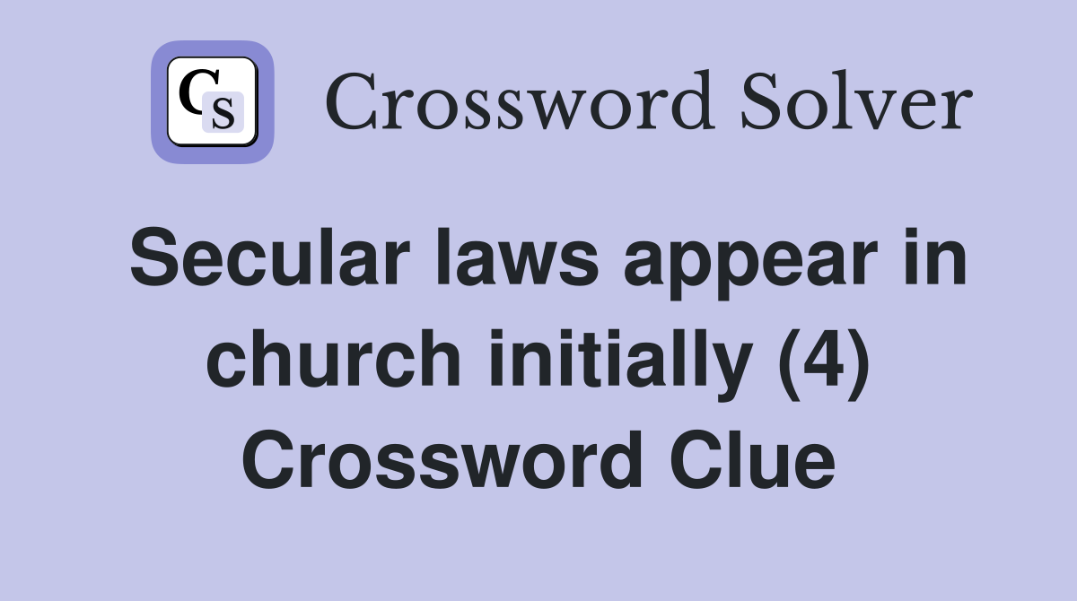 Secular laws appear in church initially (4) Crossword Clue Answers