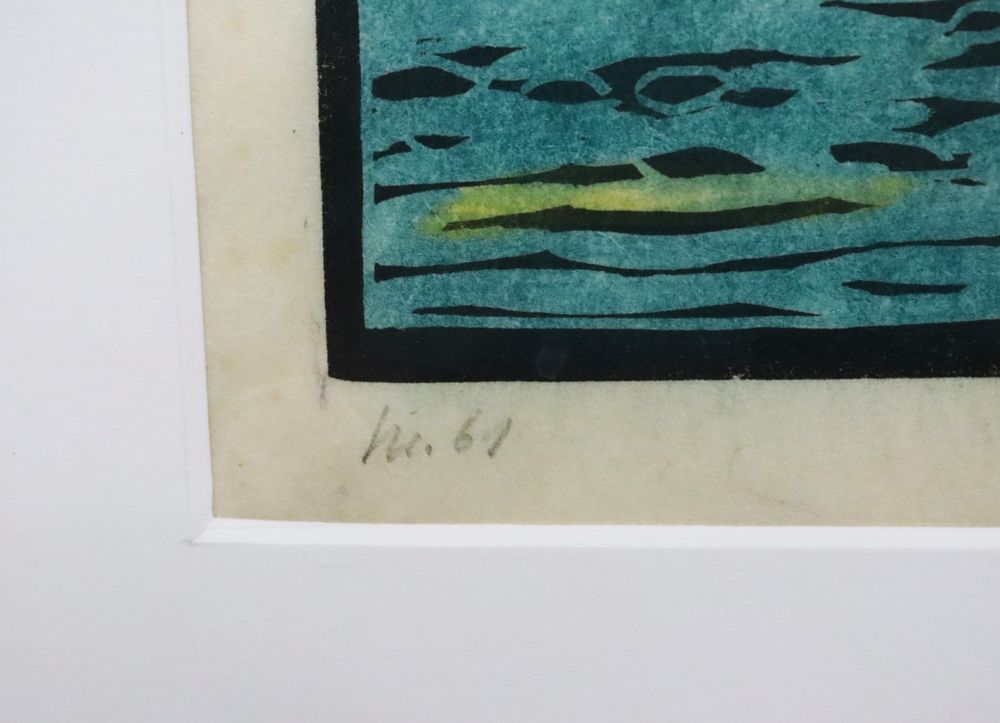 Werner Emil Engel Holzschnitt mit See und Bergpanorama (Gebraucht) in