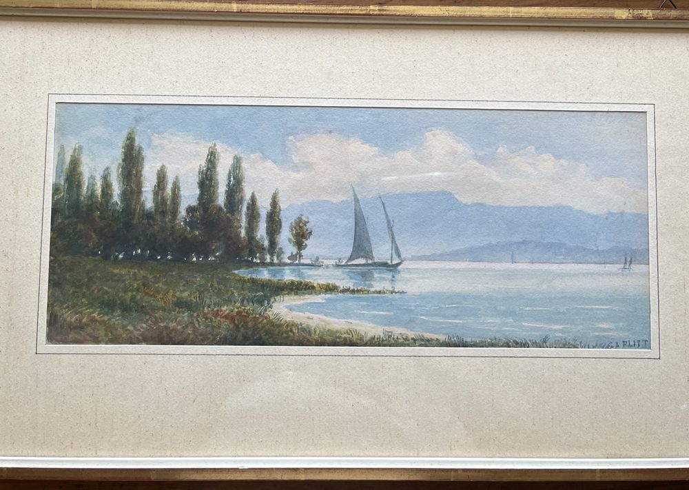 Aquarell Am See? m Signatur PLITT gerahmt hinter Glas (Gebraucht) in