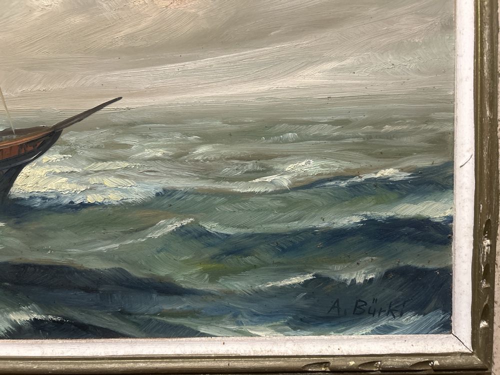 Ölbild Segelboot auf hoher See signiert A Bürki (Gebraucht) in