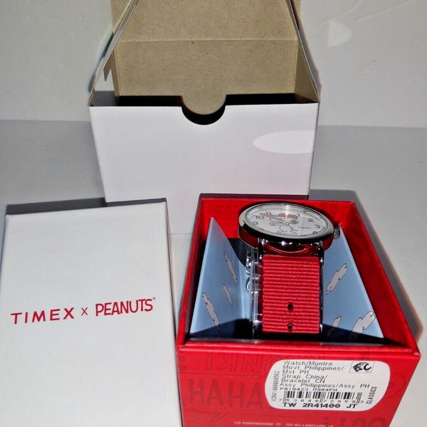 Timex TW2R41400 Peanuts Snoopy Weekender Red Slip Thru Fabric Watch