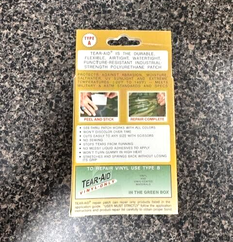 TEAR AID * FABRIC REPAIR SEE THRU PATCH * TYPE A #39 TENTS/SAILS/BIKE