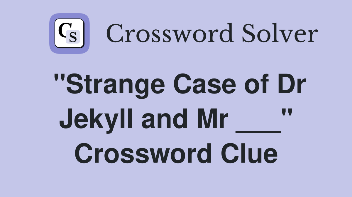 quot Strange Case of Dr Jekyll and Mr quot Crossword Clue Answers