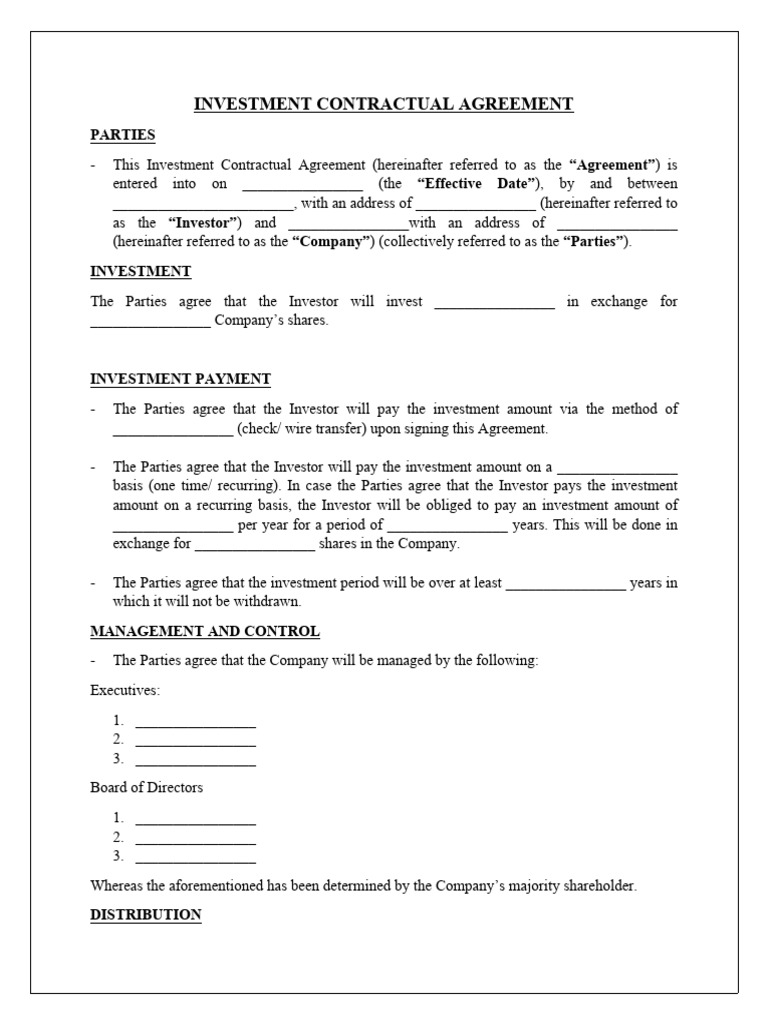 Investment Agreement Template Free Sample Investor Contract Agreement
