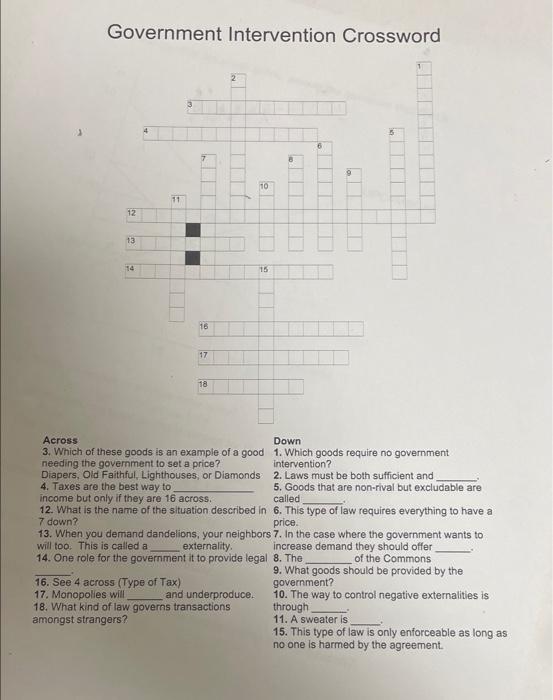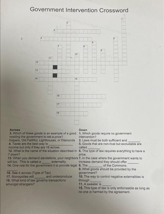 Solved Government Intervention Crossword Across Down 3 Chegg com