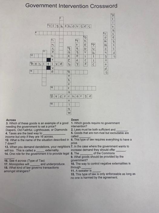Solved Government Intervention Crossword Across 3 Which Chegg com