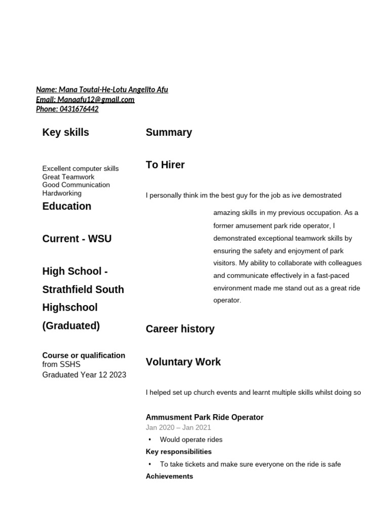 Resume Australia Example