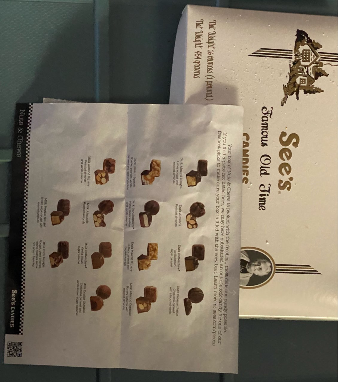 A pound of sees dark chocolate with nuts candy A very healthy candy as