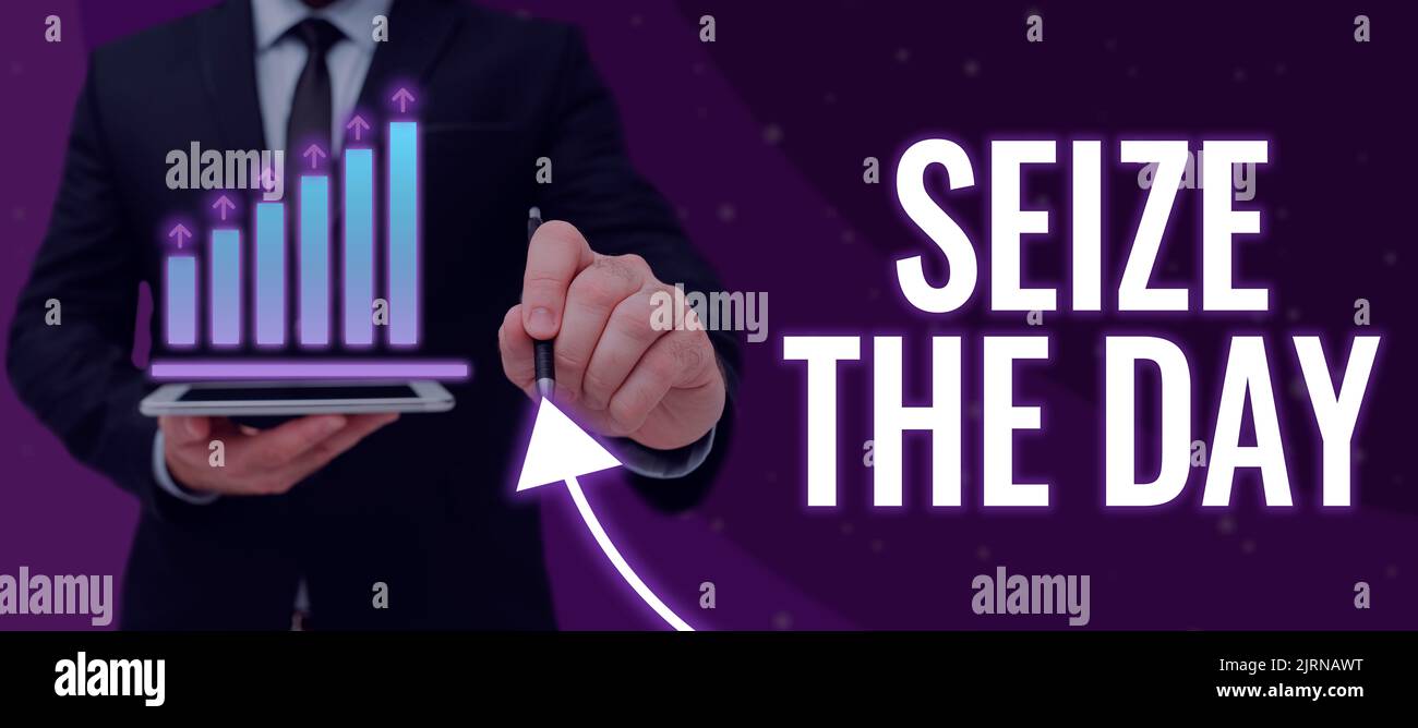 Hand Writing Sign Seize the Day Business Showcase Embrace