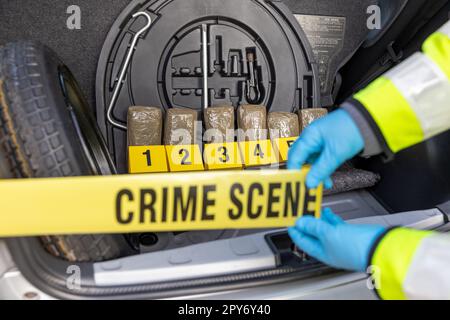 Police seize drug in the trunk of the a car during traffic stop Stock