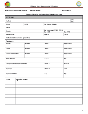 Individualized Health Care Plan for Seizure Disorder Protocol and