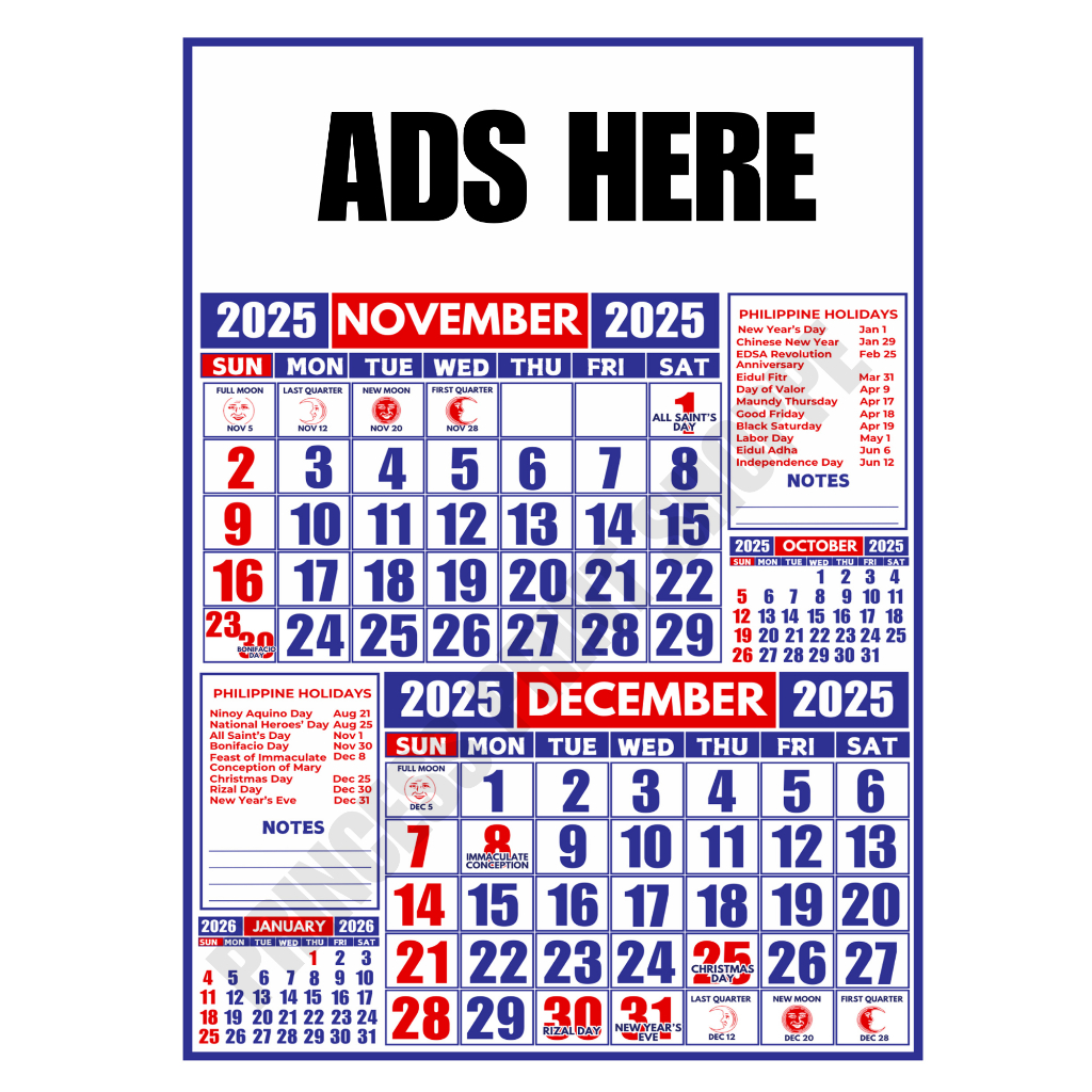 A4 Bond Paper Size 6 pages 2026 Commercial Calendar 30/50/100 pcs