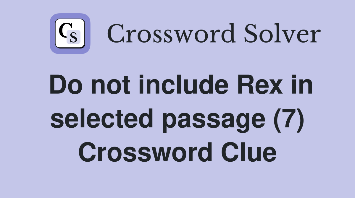 Do not include Rex in selected passage (7) Crossword Clue Answers